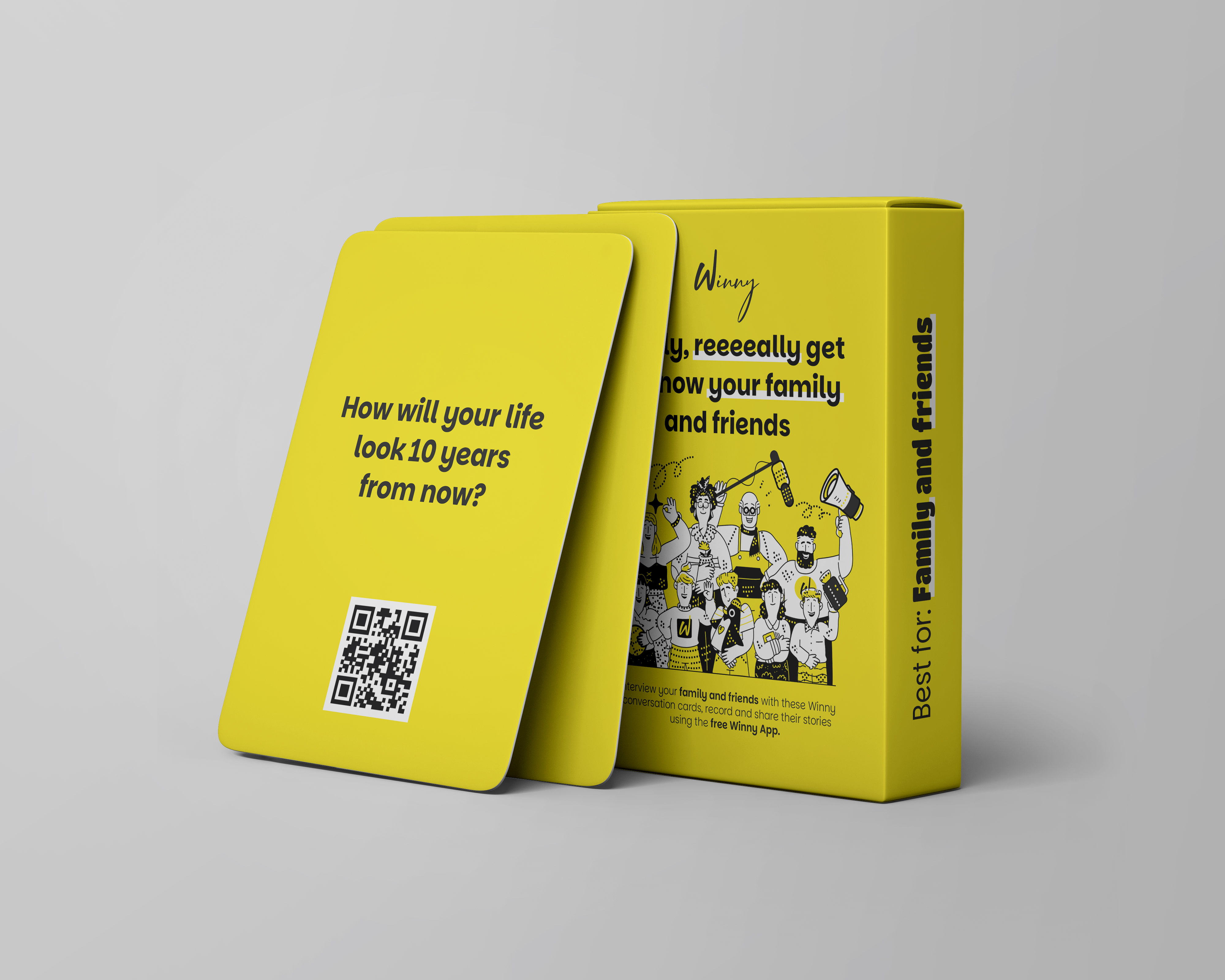 Winny, juego de cartas diseñado para disfrutar entre amigos y familia, con un enfoque divertido y visualmente atractivo. Diseño completo del empaque, pensado para transmitir dinamismo y captar la atención desde el primer vistazo, así como la creación de 59 cartas internas.